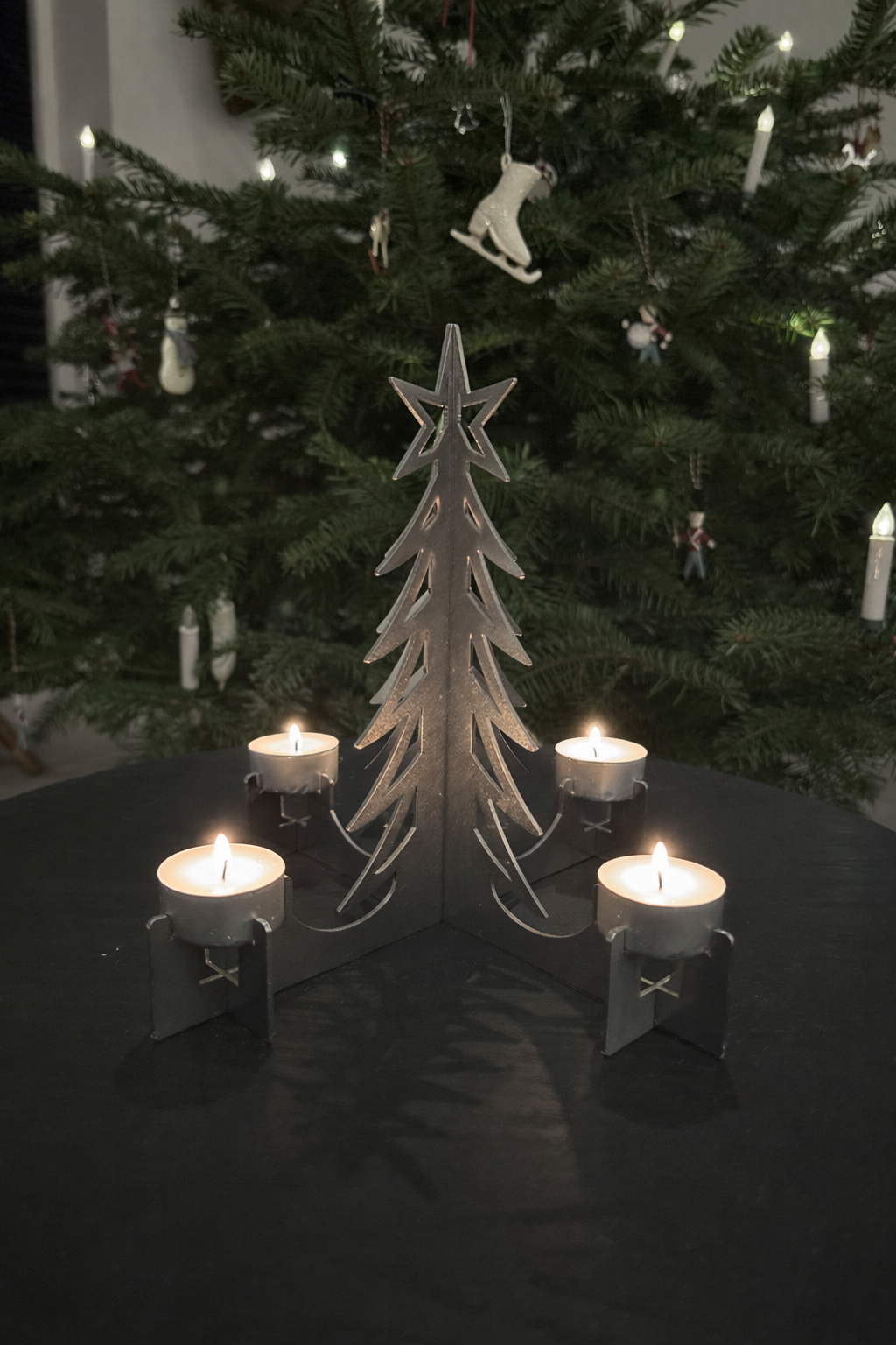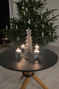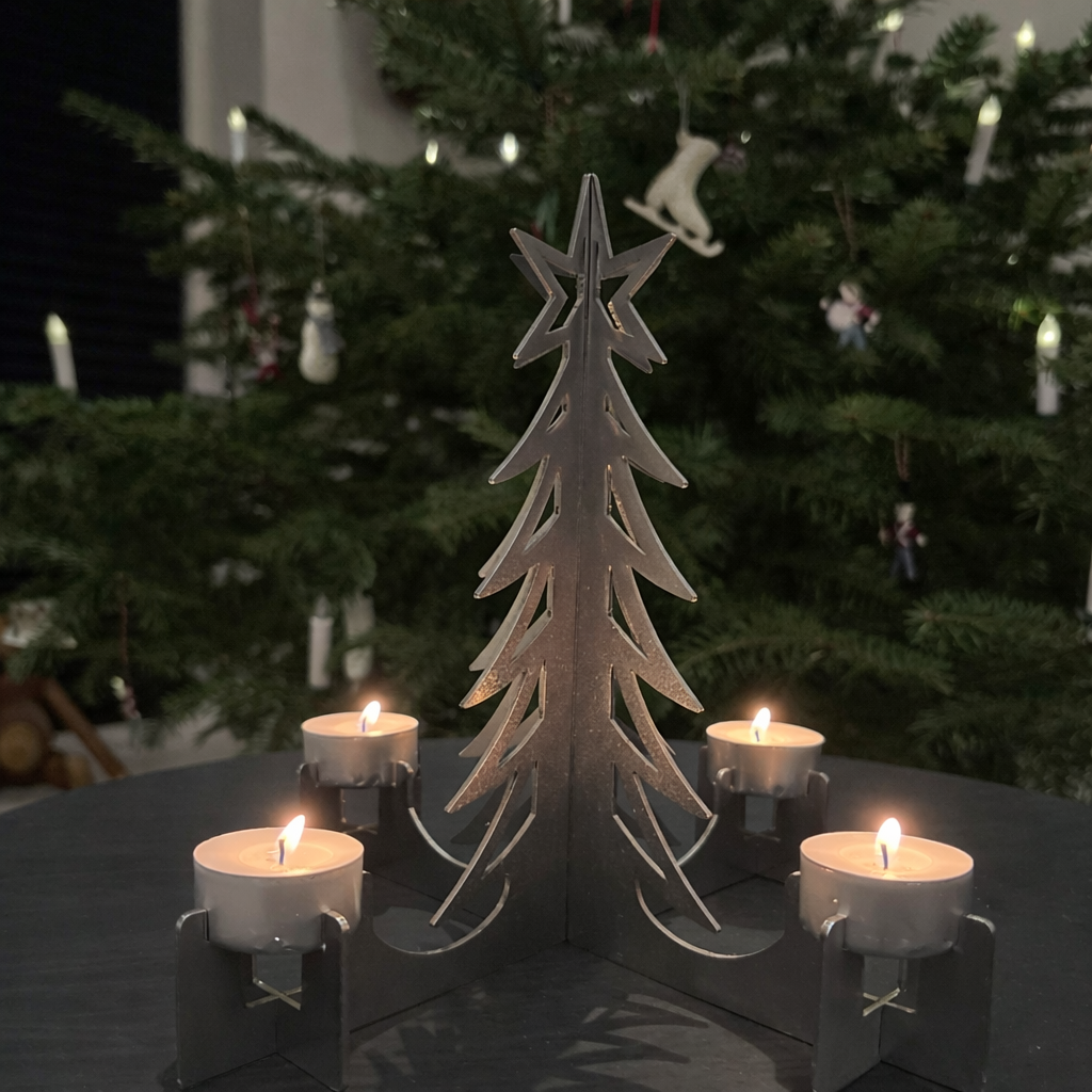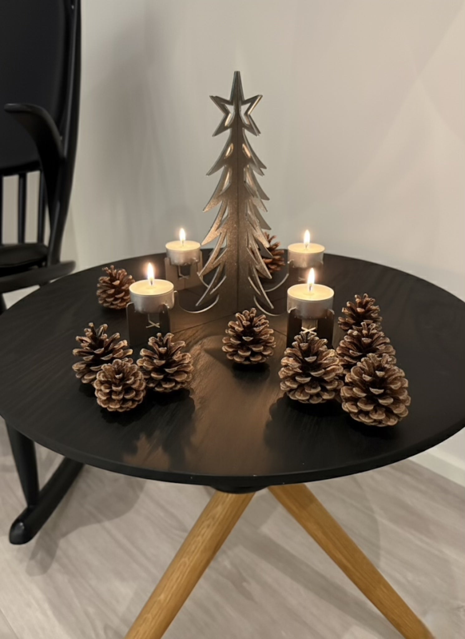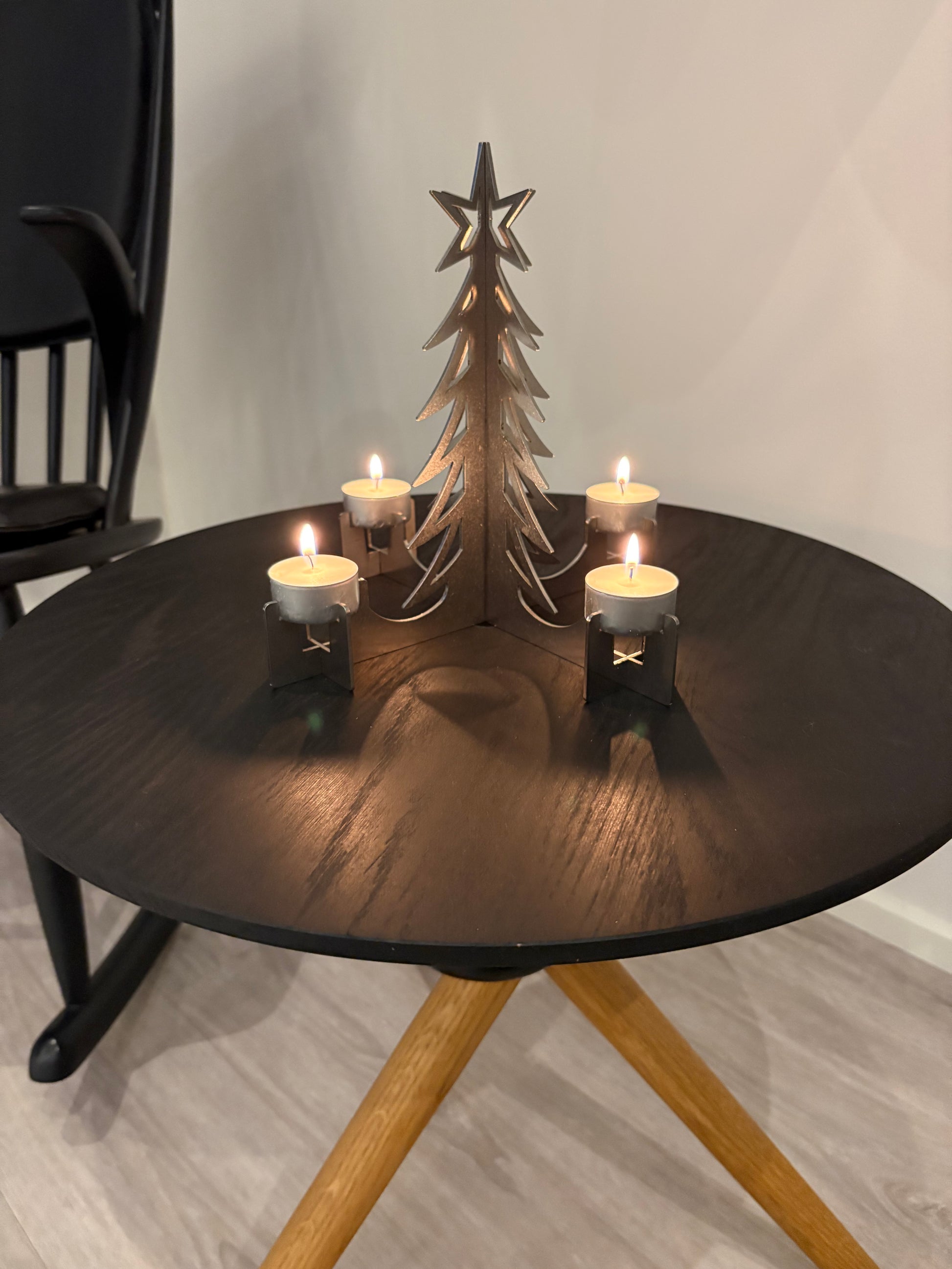 Der er plads til 4 lys, og du kan selv vælge, om du vil bruge kronelys eller fyrfadslys. En enkel og fleksibel løsning, der passer perfekt til både moderne og klassisk julehygge.