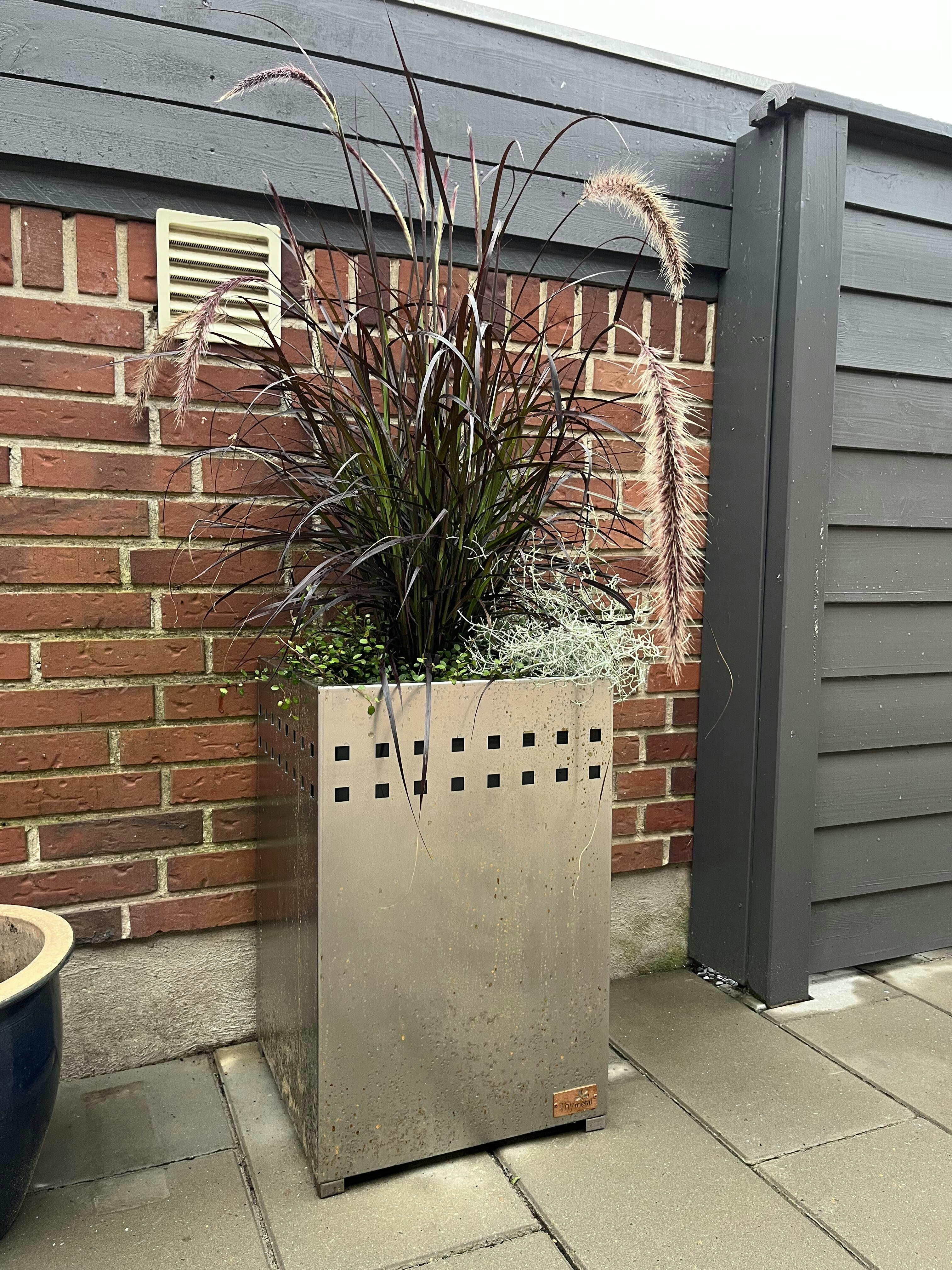 Blomsterkummen er fremstillet i 1,5 mm stål, hvilket sikrer en solid og stabil konstruktion året rundt.