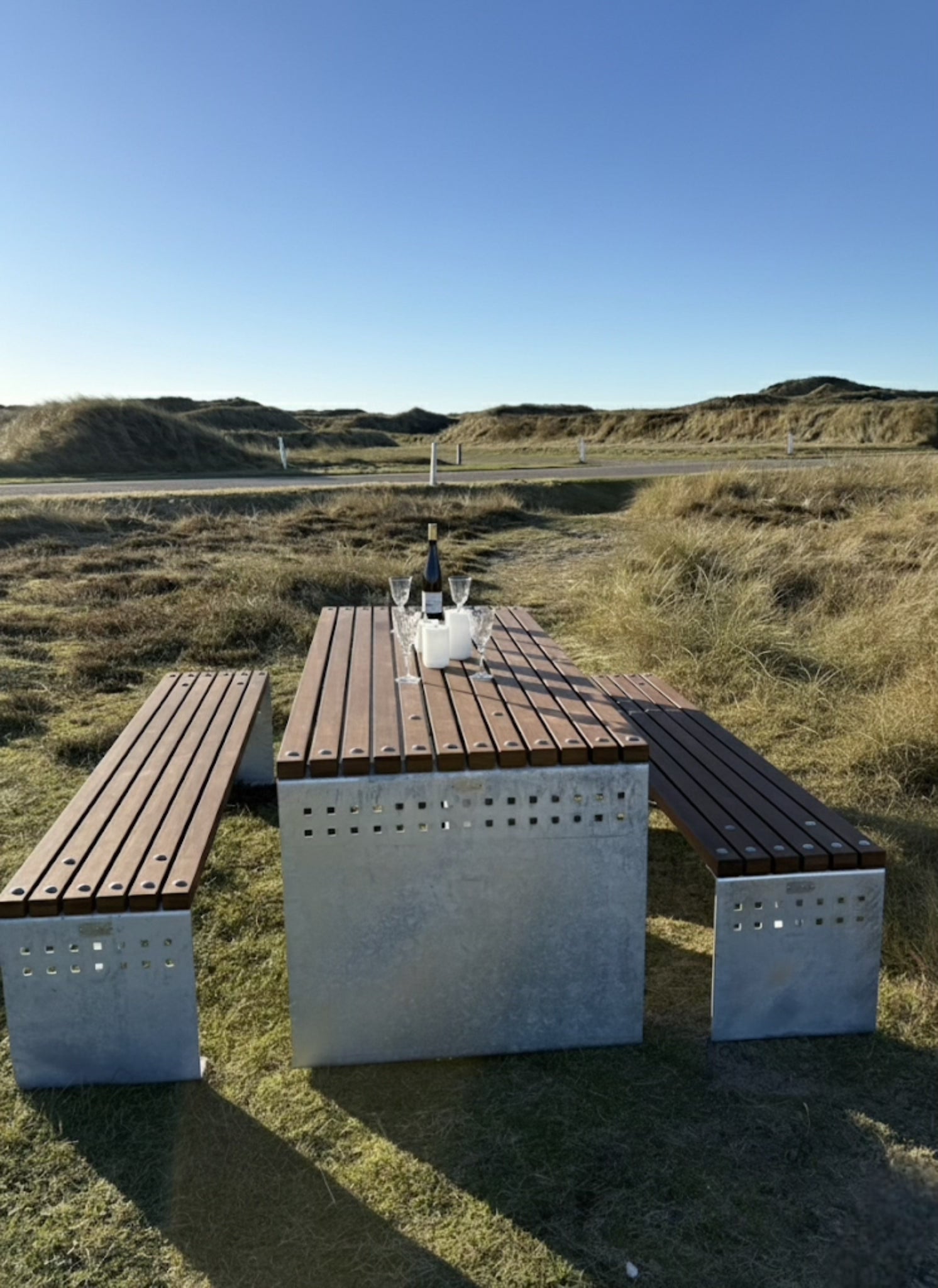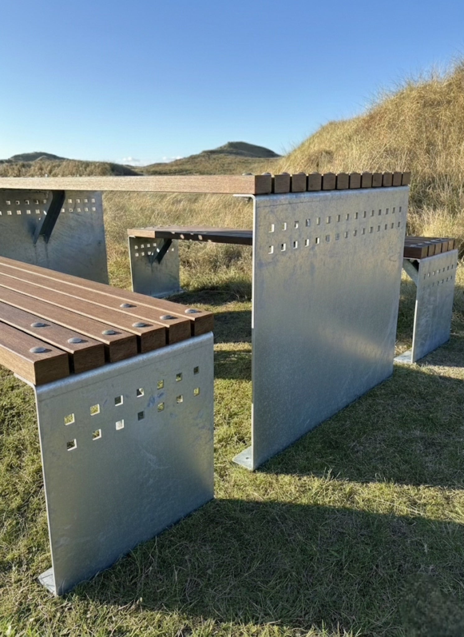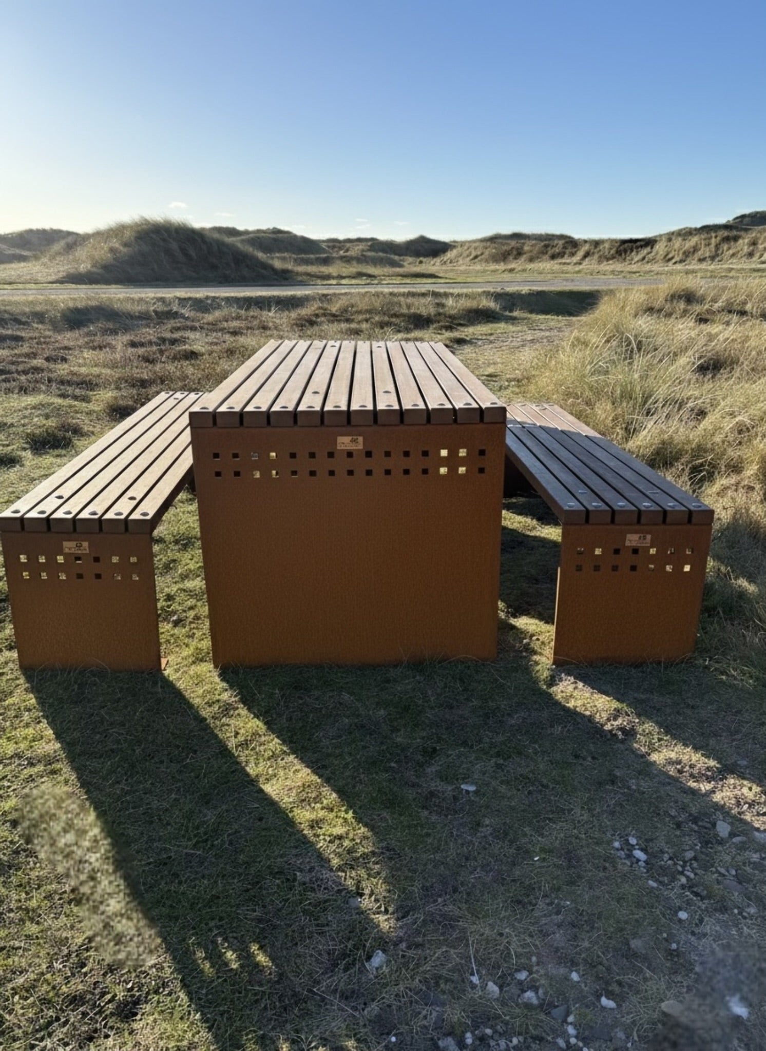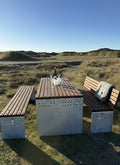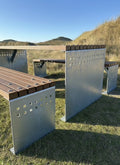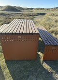 Vores eksklusive bord-bænkesæt kombinerer et stærkt og moderne stålstel med FSC®-certificeret bambusplanker. Stellet fås i både 5 mm galvaniseret stål og cortenstål, hvilket giver en rå og tidløs æstetik, der passer perfekt til både private haver, parker, institutioner og offentlige områder.