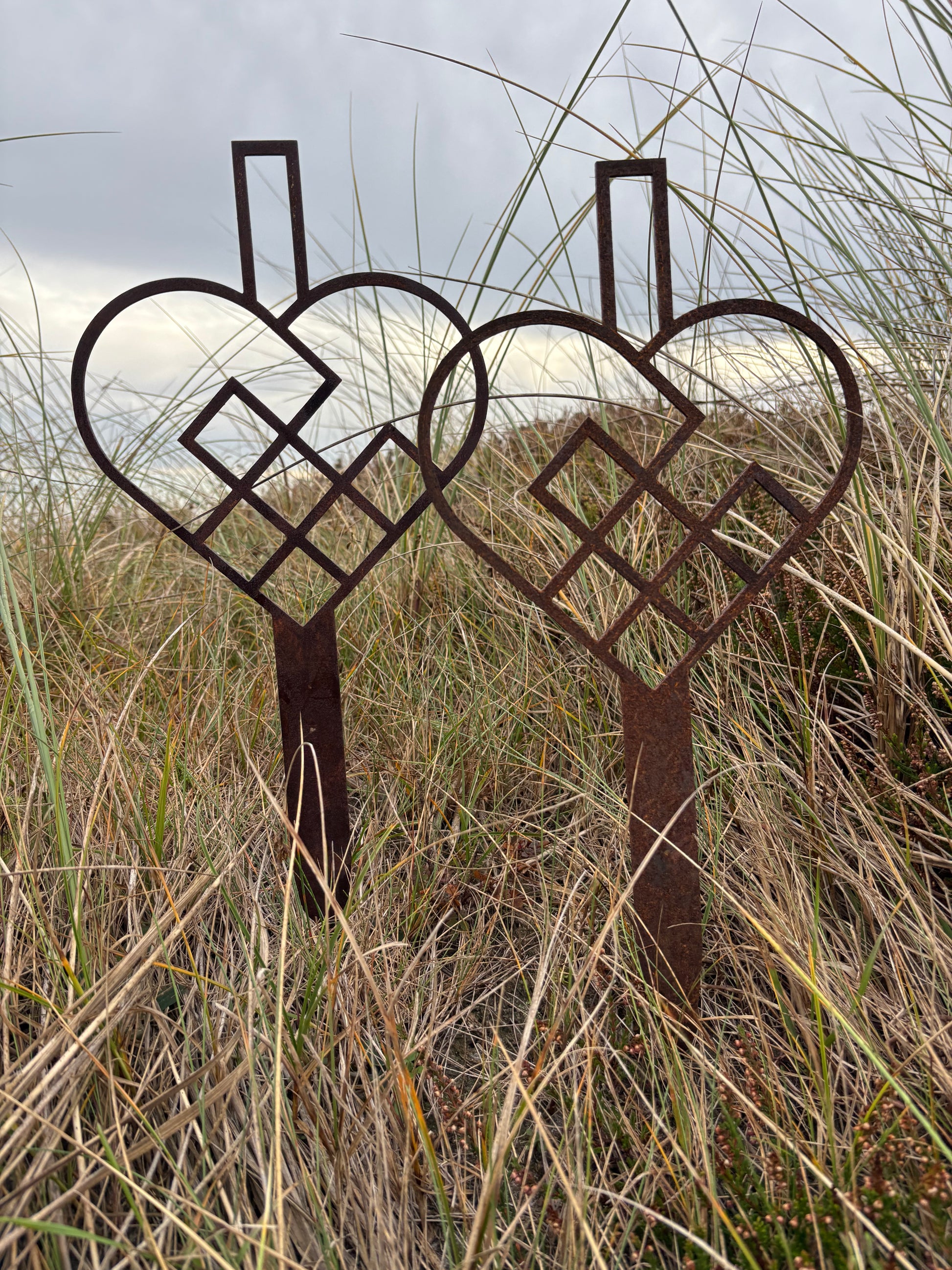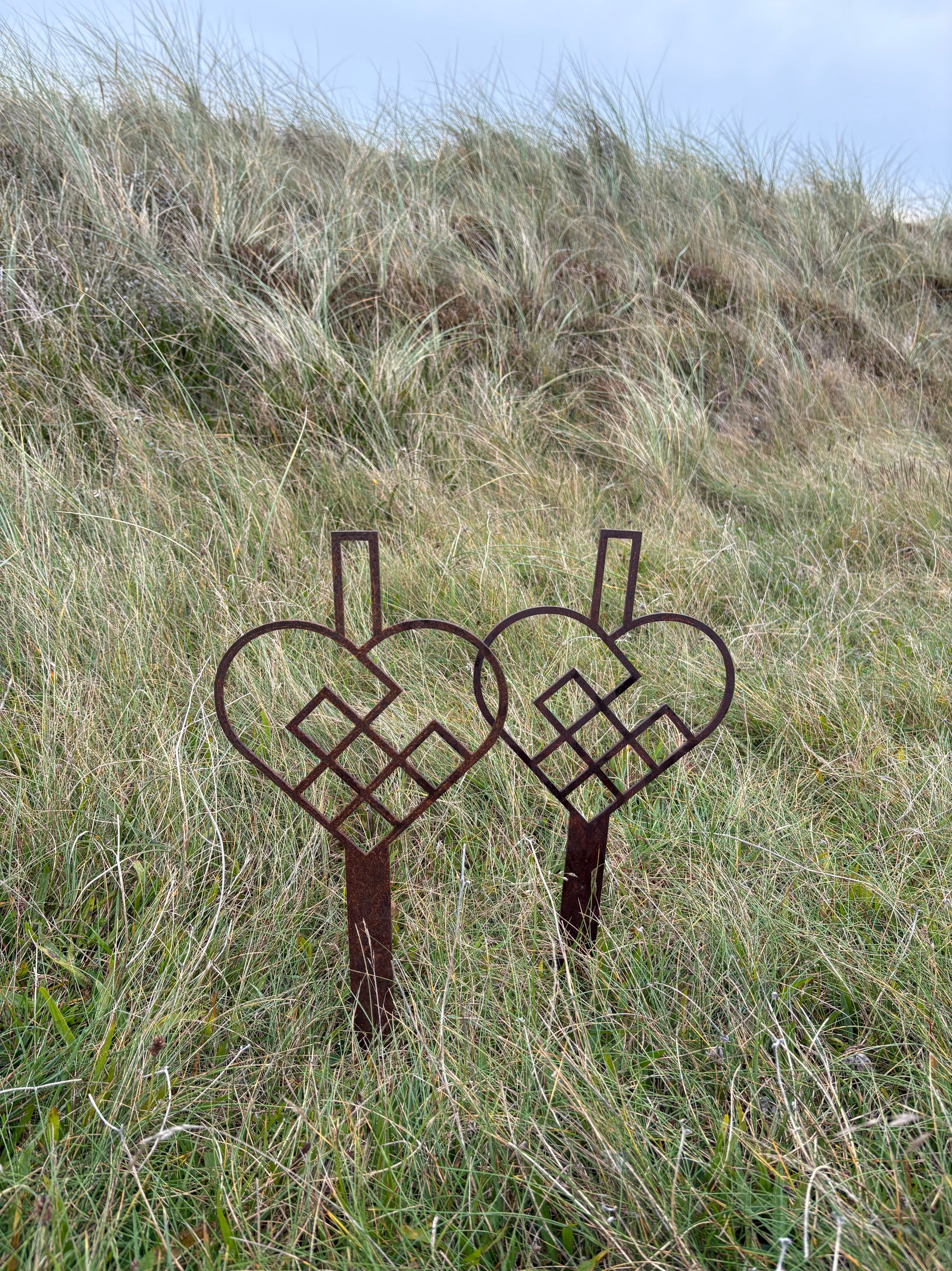 Hjertet er monteret på spyd, så det er nemt at placere præcis, hvor du ønsker det – i krukker, blomsterbede, græsplænen eller som smuk og holdbar kirkegårdspynt.