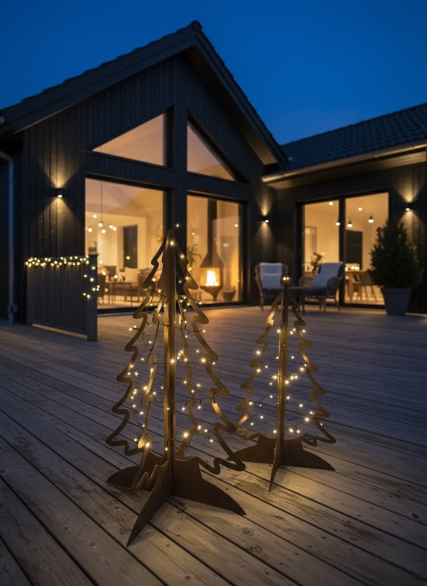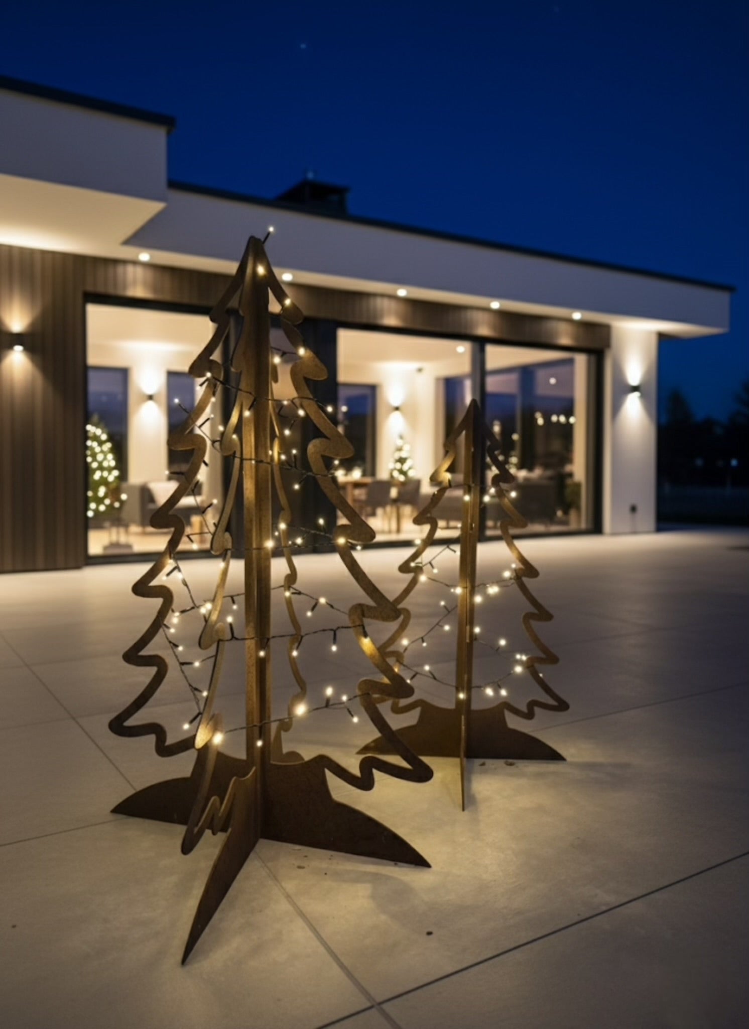 Gør de mørke vinterdage hyggelige med vores dekorative juletræer i 3 mm vejrbestandigt cortenstål.