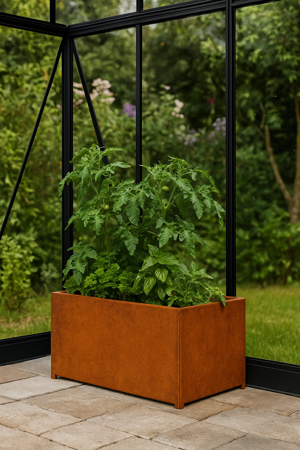 • Cortenstål – leveres uden rust, men patinerer naturligt over tid og får en smuk, rusten overflade