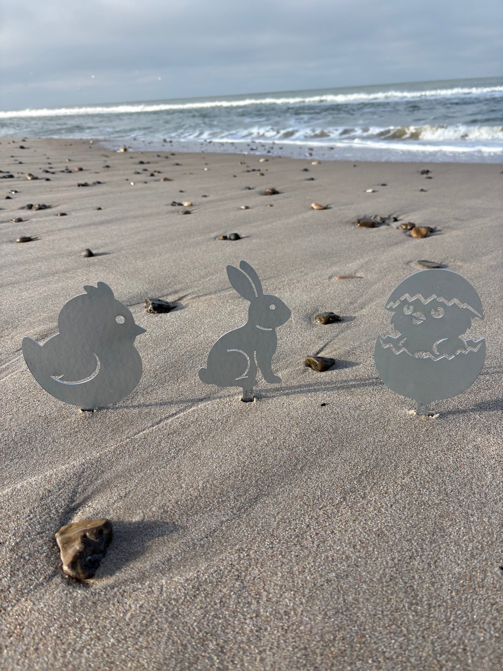 Skab stemningsfuld påskepynt i haven, krukkerne eller blomsterbedet med vores dekorative påskespyd i stål. Spyddene er laserskåret i et enkelt og tidløst design, der passer perfekt ind i både moderne og klassiske uderum.