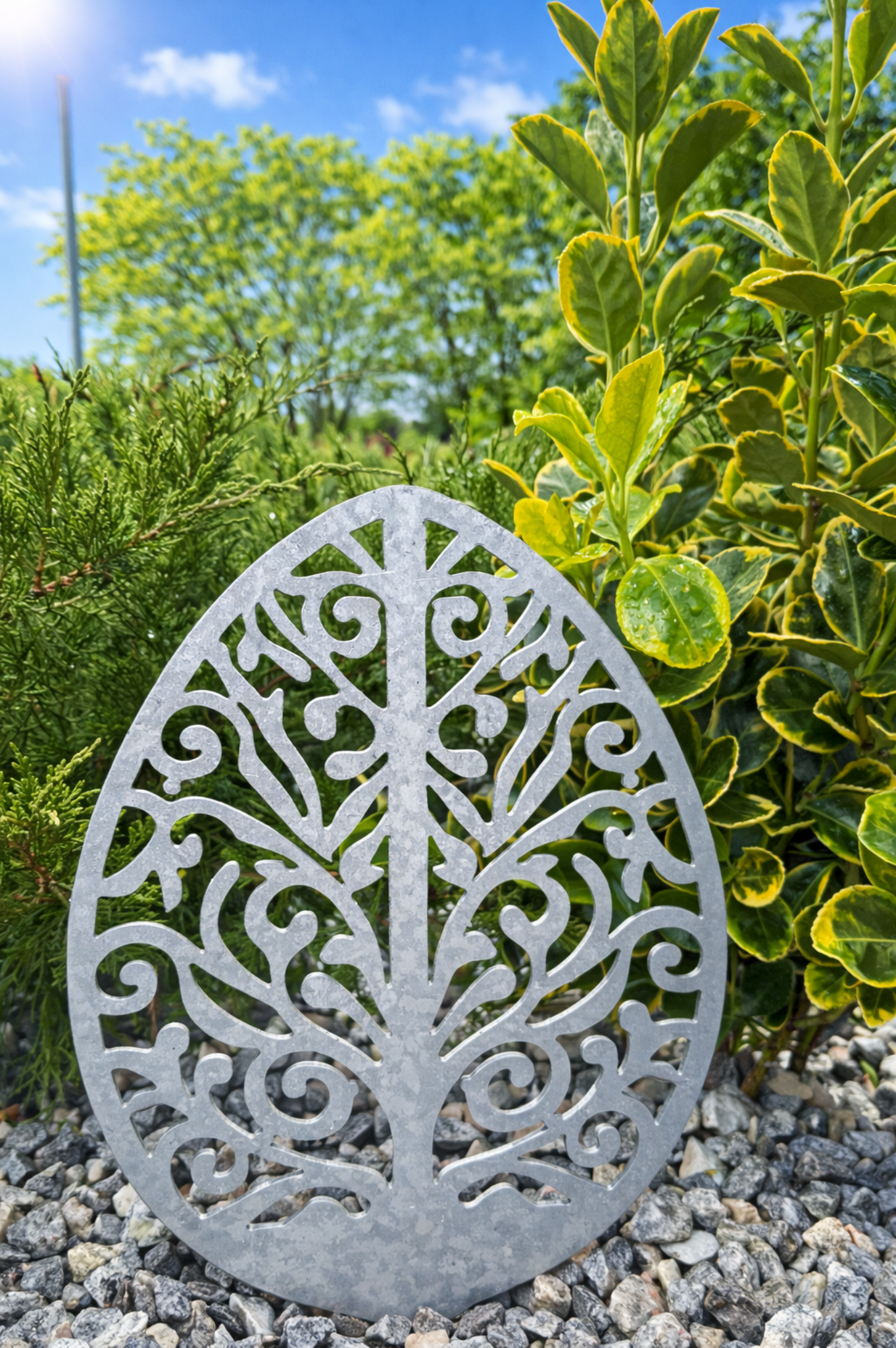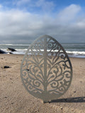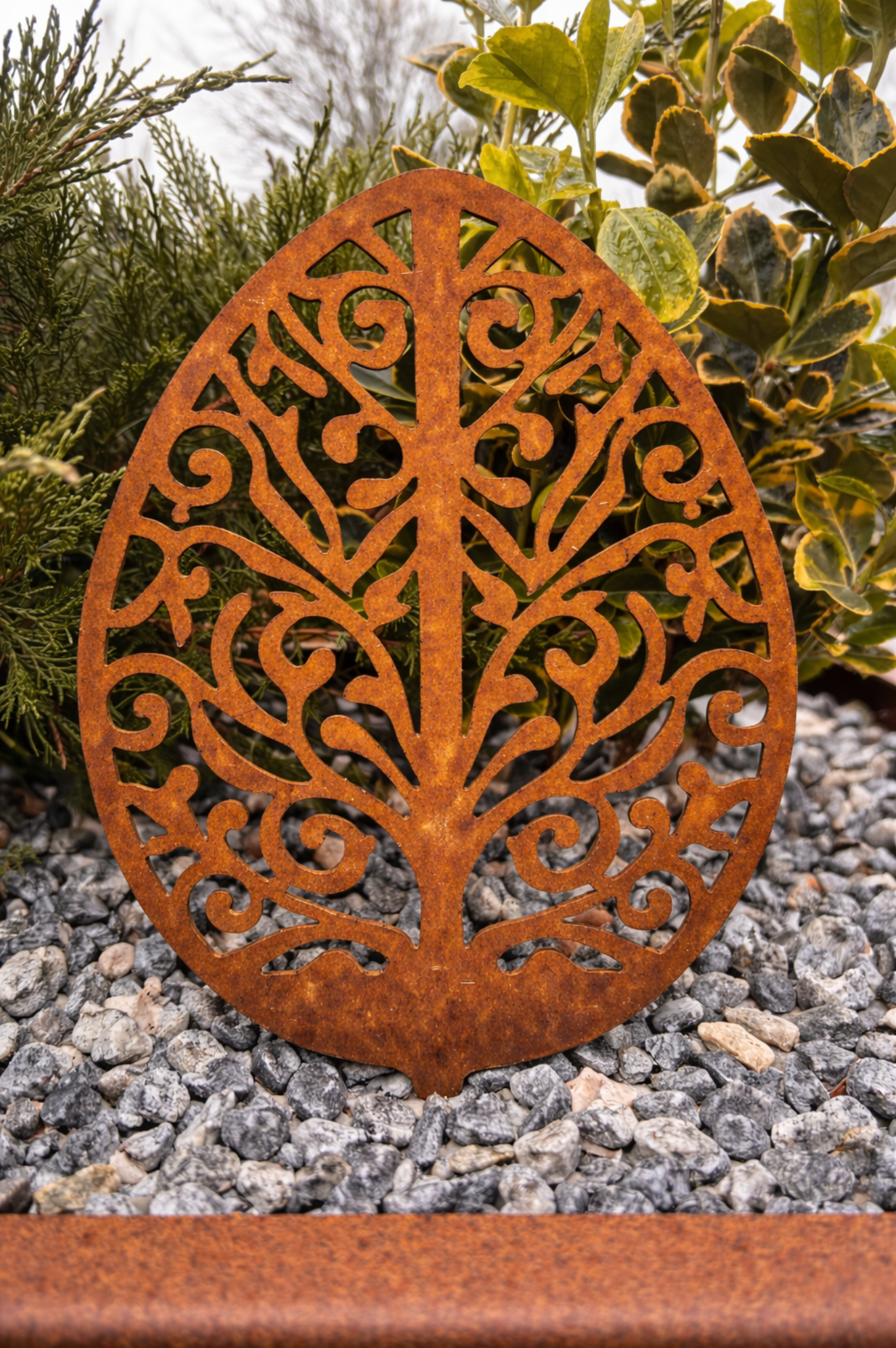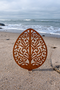 Skab et elegant og stemningsfuldt udtryk i haven med dette dekorative påskeæg i stål med integreret spyd. Det smukt udskårne æg med organiske mønstre giver et let og dekorativt udtryk, der passer perfekt i krukker, højbede, plantekasser og bede – ideelt som påskepynt, men smukt hele året.
