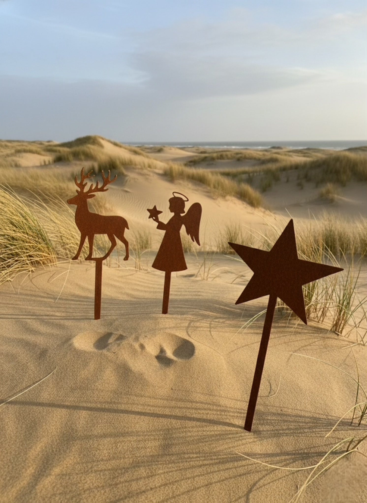 Skab stemning med disse smukke figurer i 3 mm cortenstål – et materiale, der med tiden får sin helt unikke, varme rustfarve. Cortenstål er ekstremt holdbart og vejrbestandigt, så du får et produkt, der holder sig flot år efter år.