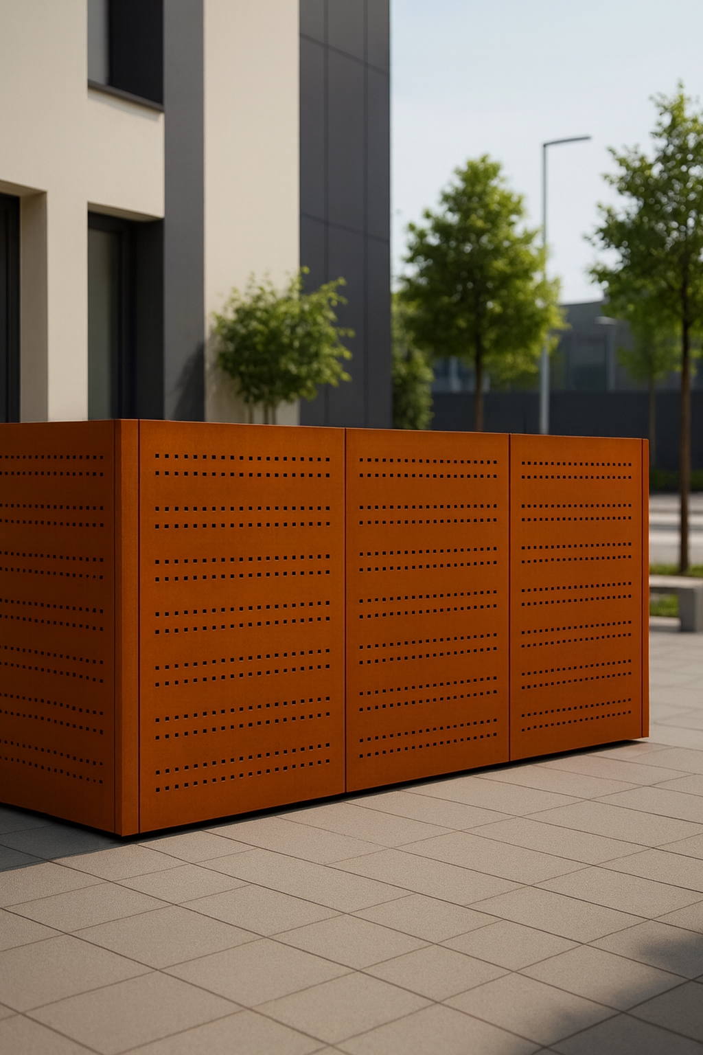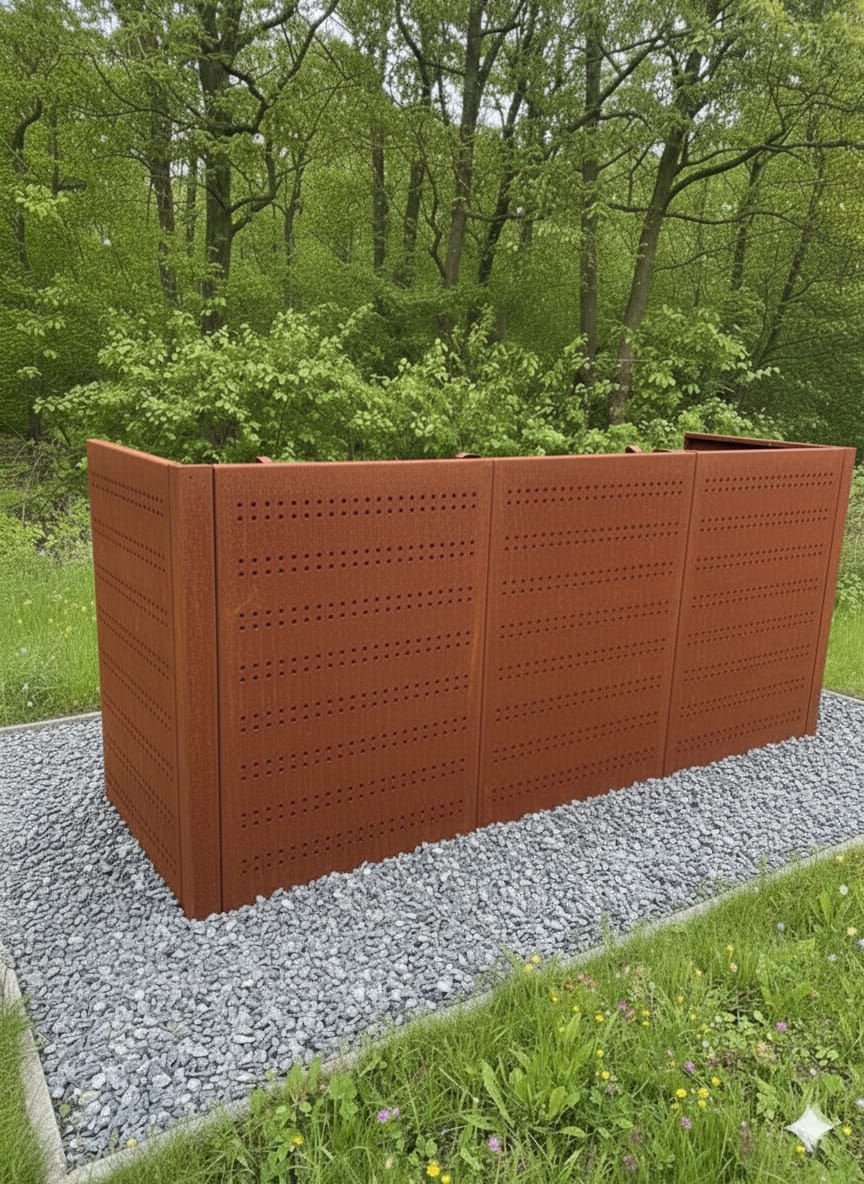 Skraldespandsskjuler til 3 spande – i corten stål eller galvaniseret stål