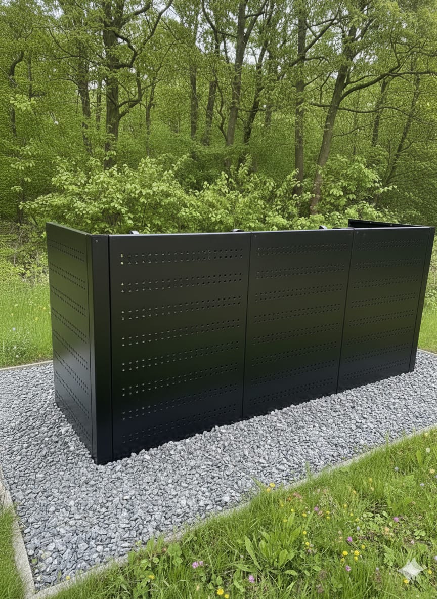 Med en skraldespandsskjuler til 3 spande fra Thymetal får du en stilren og robust løsning, der kombinerer funktionalitet, holdbarhed og dansk design.