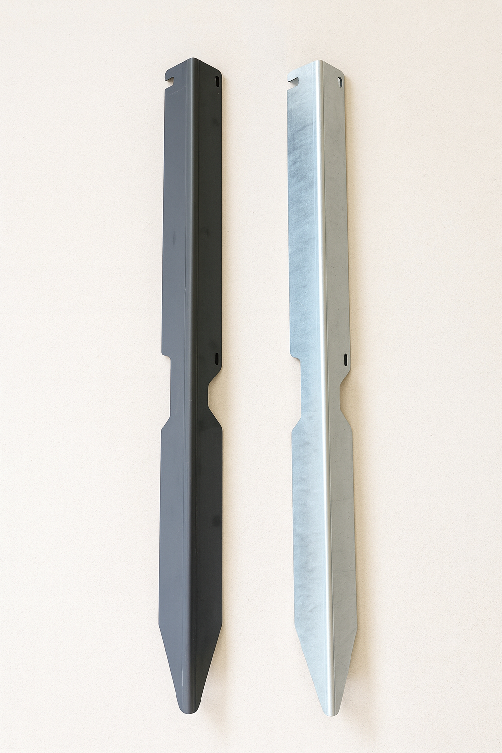 Vi producerer selv på eget værksted i Thy og anvender 2 mm cortenstål eller 2 mm galvaniseret stål – materialer, der er vejrbestandige, slidstærke og stort set vedligeholdelsesfrie.