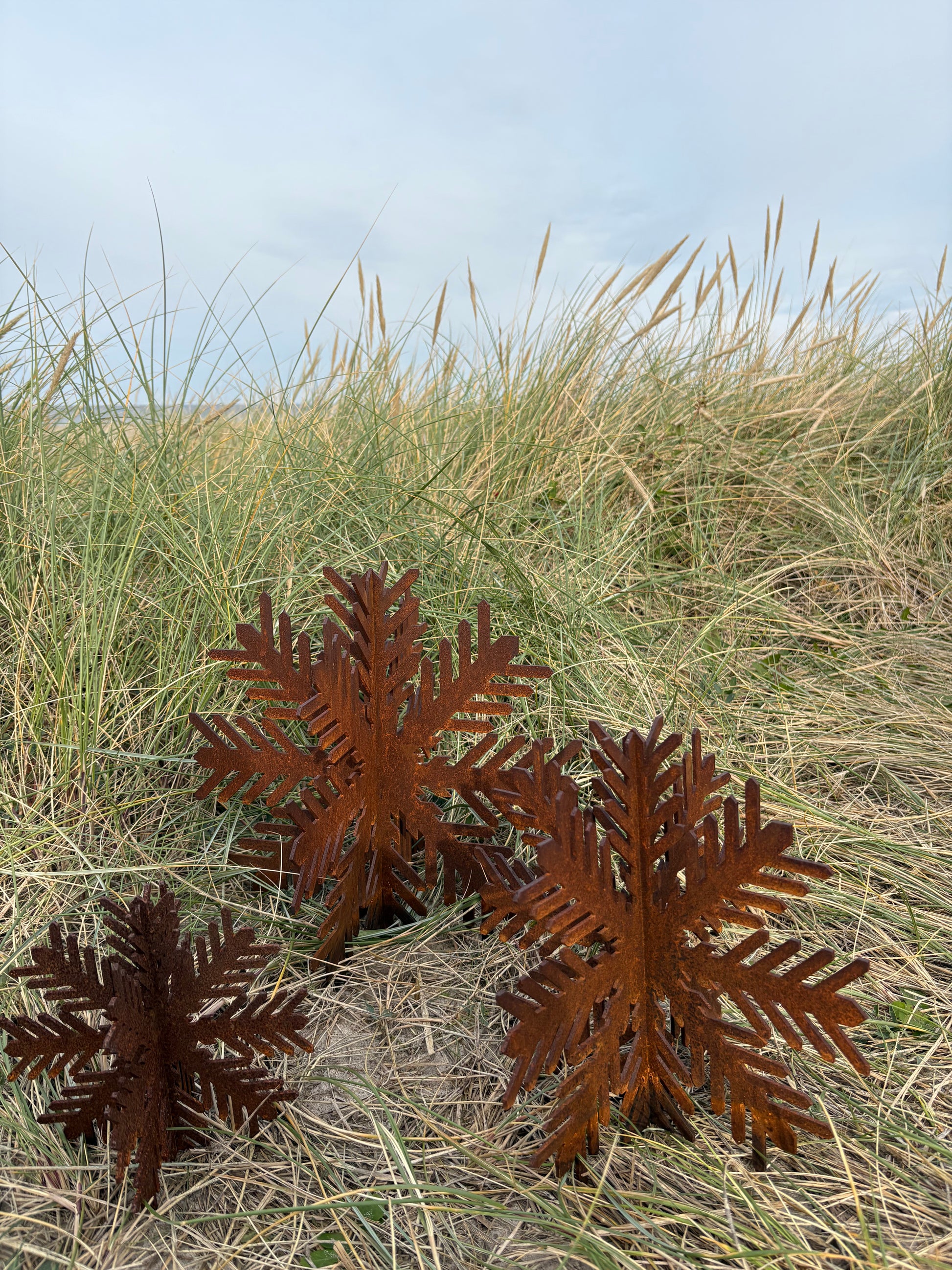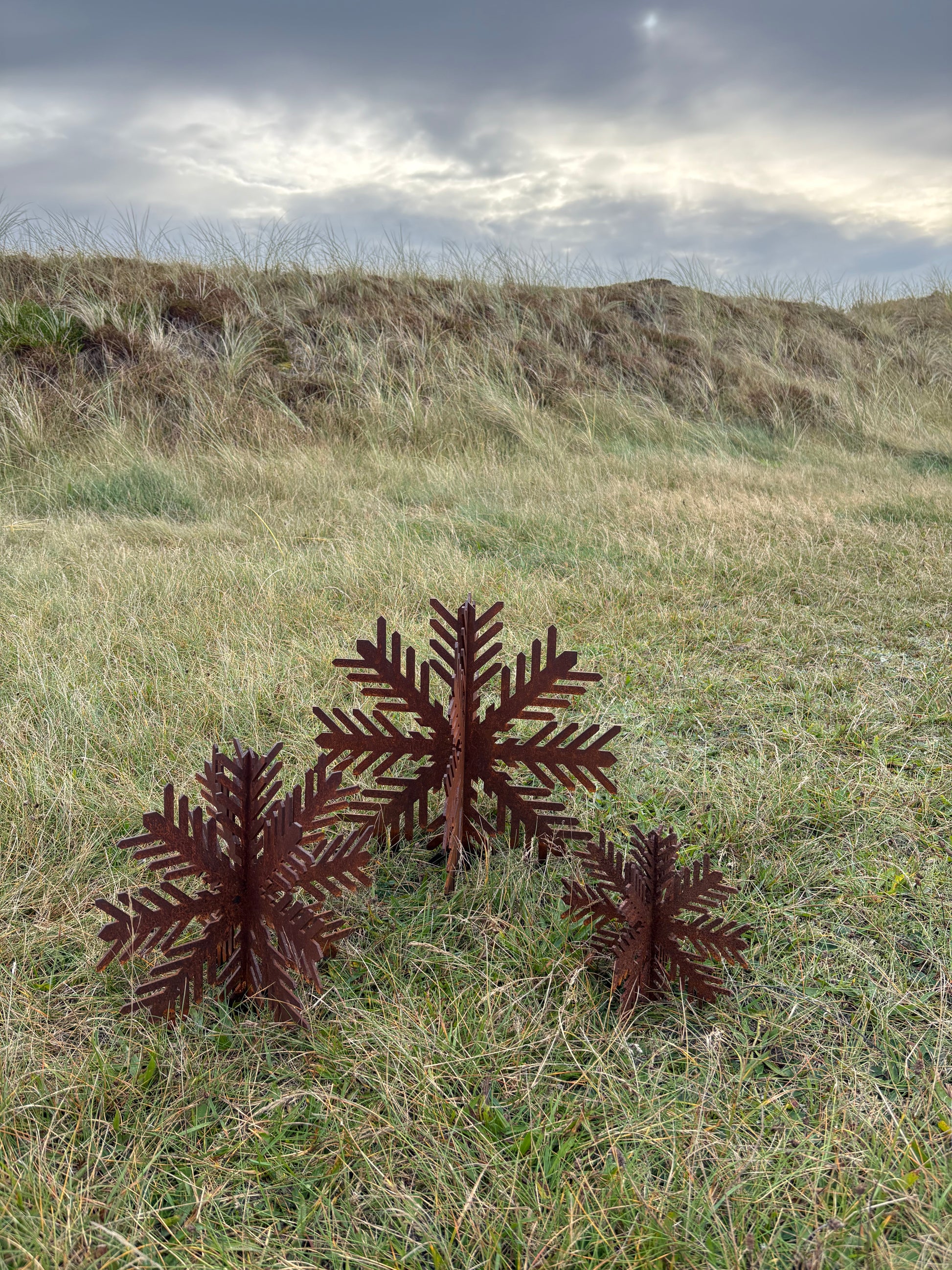 Hvid jul er desværre ikke altid en selvfølge – men med vores dekorative snefnug i vejrbestandigt corten stål kan du nyde vinterens magi, uanset vejret.