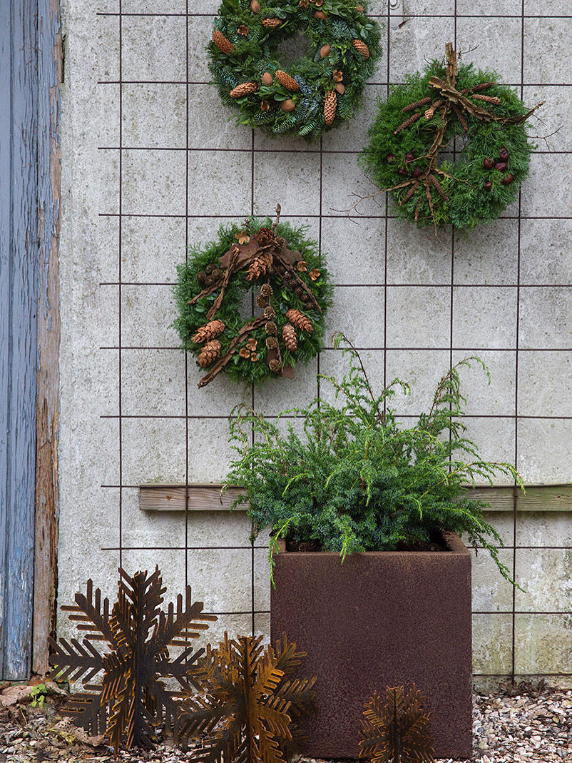 Over tid får stålet en smuk, varm rustpatina, som skaber en flot kontrast til havens planter og omgivelser.