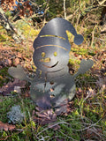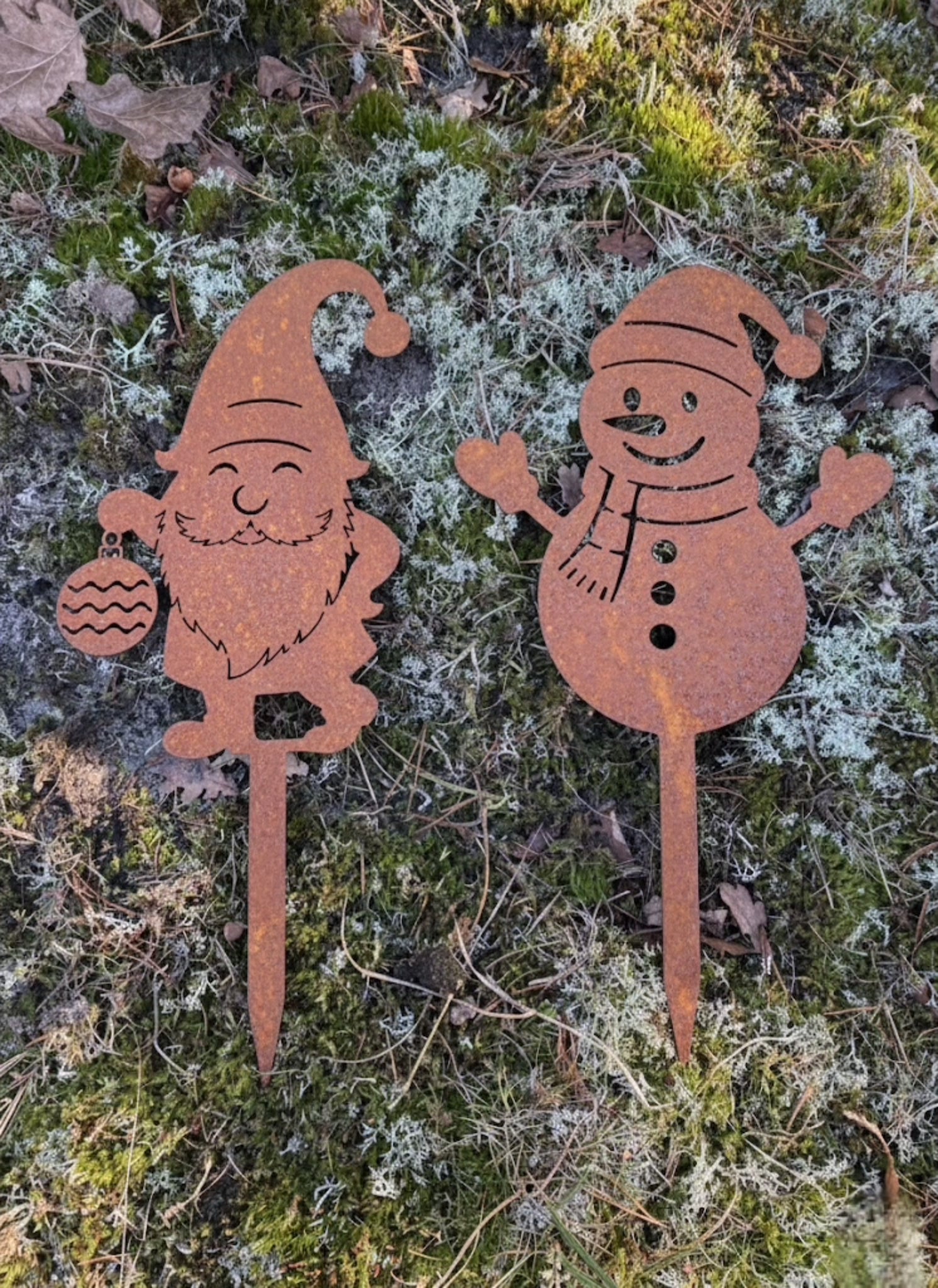 Figuren er laserskåret i ét stykke og sidder på et solidt spyd, så den står stabilt i jord, bede, krukker eller mos-arrangementer.